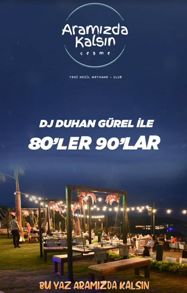 Haftanın her günü 12 00 ile 03 00 saatleri arasında 80 ler 90 lar dj performansı aramızda kalsın çeşme de. Aramızda kalsın çeşme hakkında gündüz ayayorgi koyunda eşsiz manzarası palmiye ve zeytin ağaçlarıyla çevrili bahçe konsepti. Organik ürünler sıcak soğuk kahvaltı çeşitleri ile mükellef serpme kahvaltısı özel otoparkı ve siz çocuklu misafirlerimiz için düşünülmüş oyun parkı sabah 08 00 akşam 17 arası. Metin arolat programı için masa konuma göre limitli yerli alkollü 4 kişyie 70cl fix menü fiyatı kişi başı 300 tl ile 1000 tl arasında değişmektedir.