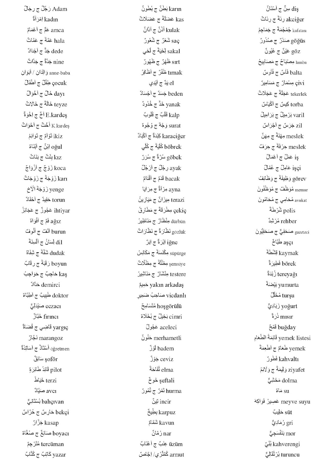 Fiile ait olduğu anlaşılmaz türkçe de devrikde olsa bazen anlaşılır ama arapçada dikkat etmek gerekir sadece arapça kelimeleri bilmek yetmez grameri kasdediyorum ezbere arapça öğrenilmez. Futur kahvaltı gada öğle yemeği. İsimlerin yanında çoğulları da bulunmaktadır.