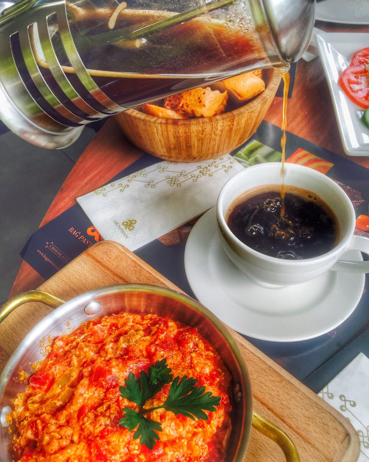 Izgara hellim peynir beyaz peynir eski kaşar burgu peyniri tulum peyniri dil peyniri sahanda yumurta sahanda sucuk sahanda pastırma sahanda kavurma zeytin çeşitleri tabağı bal kaymak reçel domates salatalık biber maydanoz patates peynir harmanlı sigara böreği kıymalı sigara. Haftanın her günü serpme kahvaltı verilir. Rezervasyon iptalleri 24 saat önceden bildirilmelidir. Bağ pastaneleri 1961 den günümüze sahip olduğu tecrübesini müşterilerinin güveniyle birlikte nesiller boyu oluşmuş ortak lezzetleri yaşatmayı amaç edinmiş bir kuruluştur.