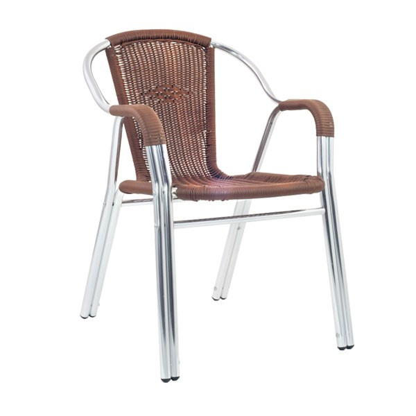Chaise de terrasse en aluminium. L assise en résine tressée du fauteuil de terrasse est homologuée en581 1 et 581 2. Il est particulièrement recommandé pour les professionnels de la restauration les cafetiers et les loueurs. Composé d une table carrée et de 2 fauteuils en métal de la gamme chelsea cet ensemble léger et facile à entretenir convient idéalement à l aménagement des terrasses de cafés d hôtels ou de restaurants. Cette chaise de terrasse en résine a une visserie et une structure en aluminium anodisé.
