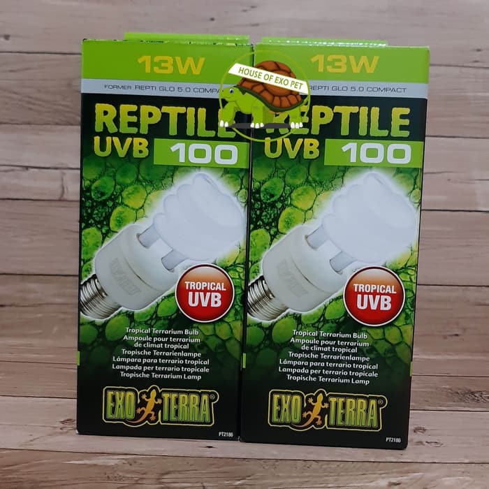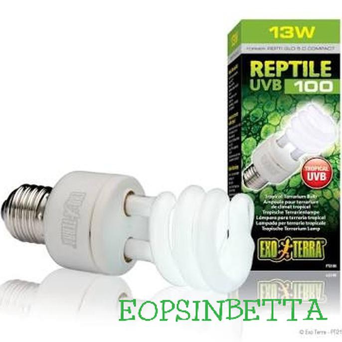 The exo terra reptile uvb200 emits the ideal uvb spectrum for optimal vitamin d3 photosynthesis. Exo terra s new lighting range utilizes a unique rating system. Exo terra s reptile uvb 100 is a 26w tropical terrarium bulb. Reptiles living in these habitats receive moderate uv radiation due to climatological conditions fairly high humidity changes in weather etc that prevent unfiltered sunlight from reaching the.